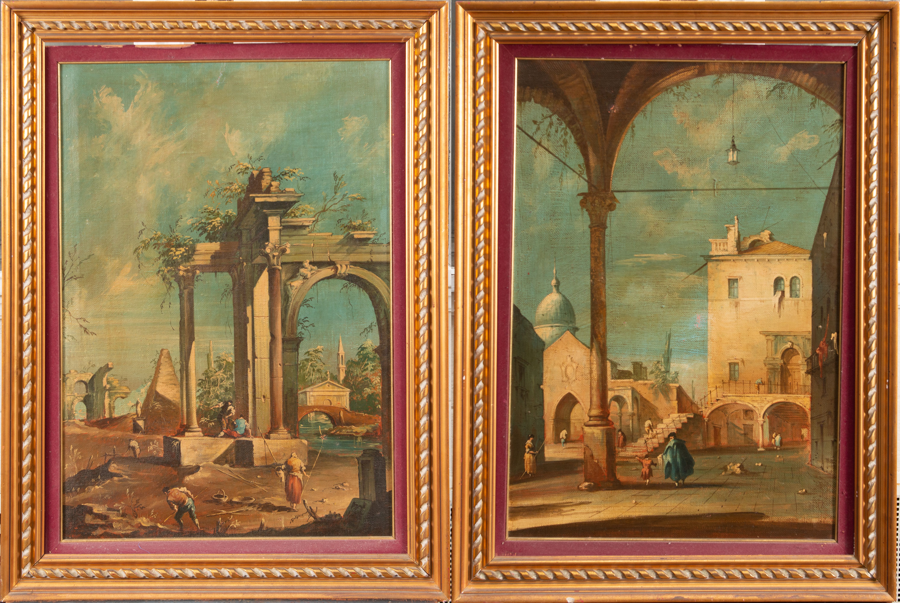 Giacomo Guardi (1764-1835)-taste of, pair of capriccios. Oil on canvas. Framed. 70 x 50 cm.
