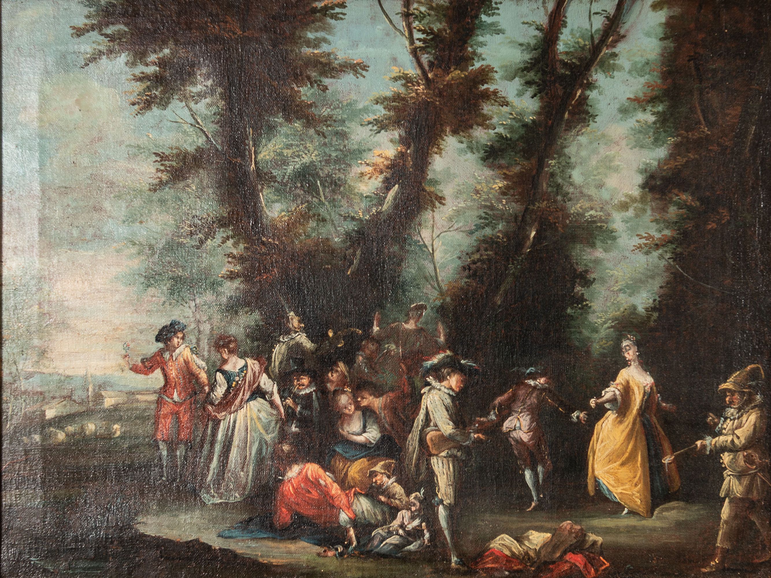 Jean Antoine Watteau ( 1684-1721) – circle, La Vie Joyeuse , oil on canvas, framed. 54 x 70 cm