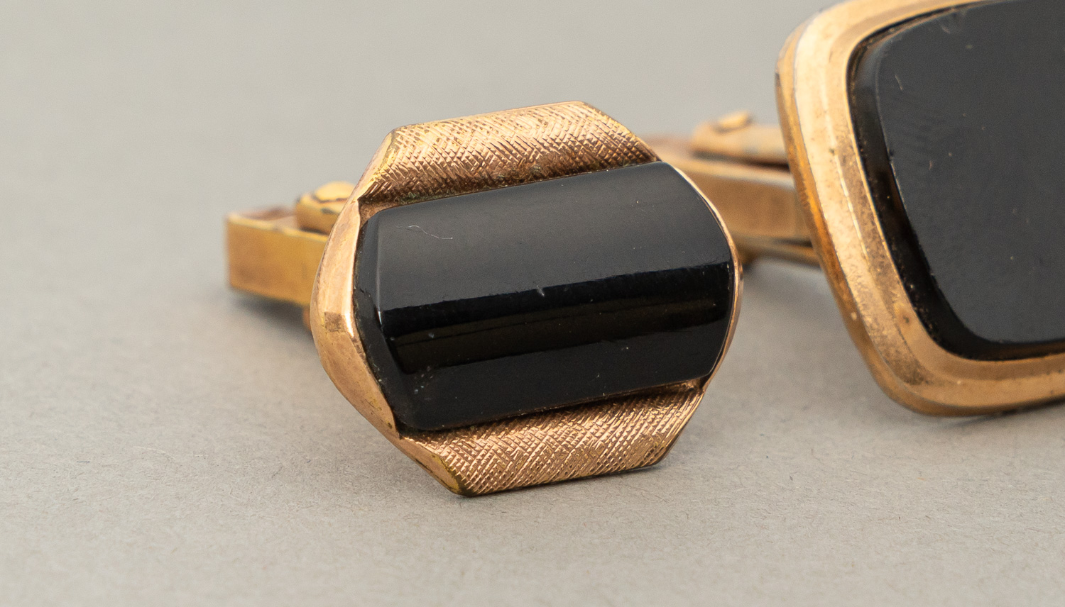 Lot of Three Items, two gilded cufflinks and a broch with two stones. 13 gramm total.