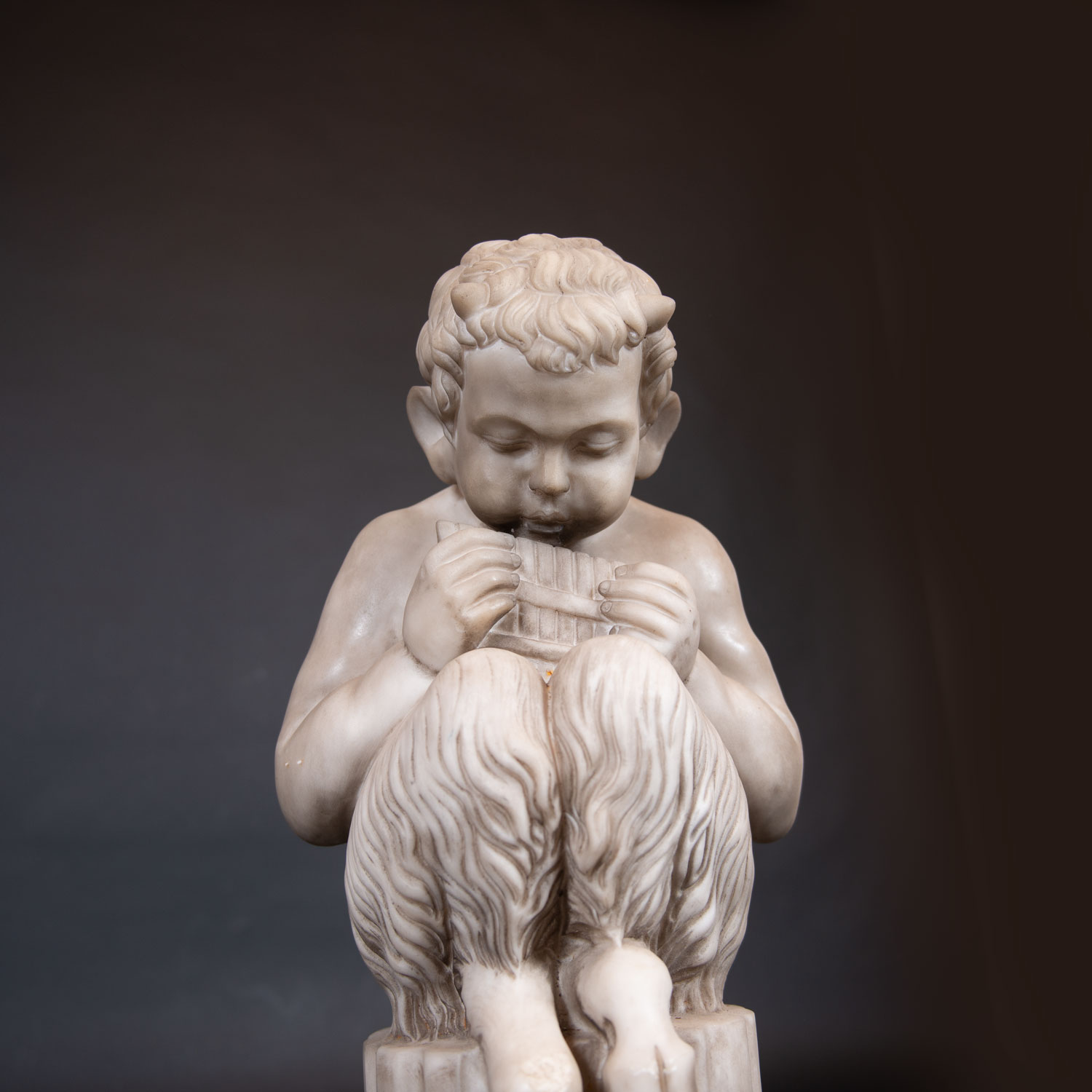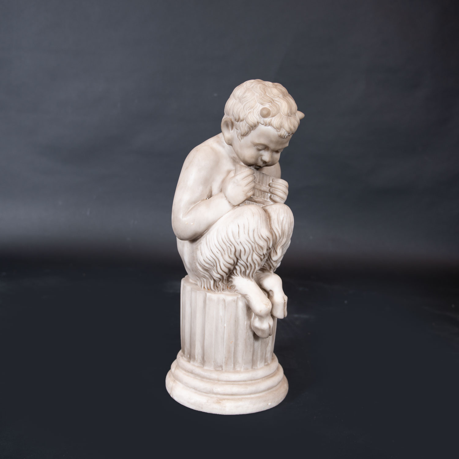 Artist around 1900, the young satyr. Sculpted white marble with grey veins. 64 cm high.