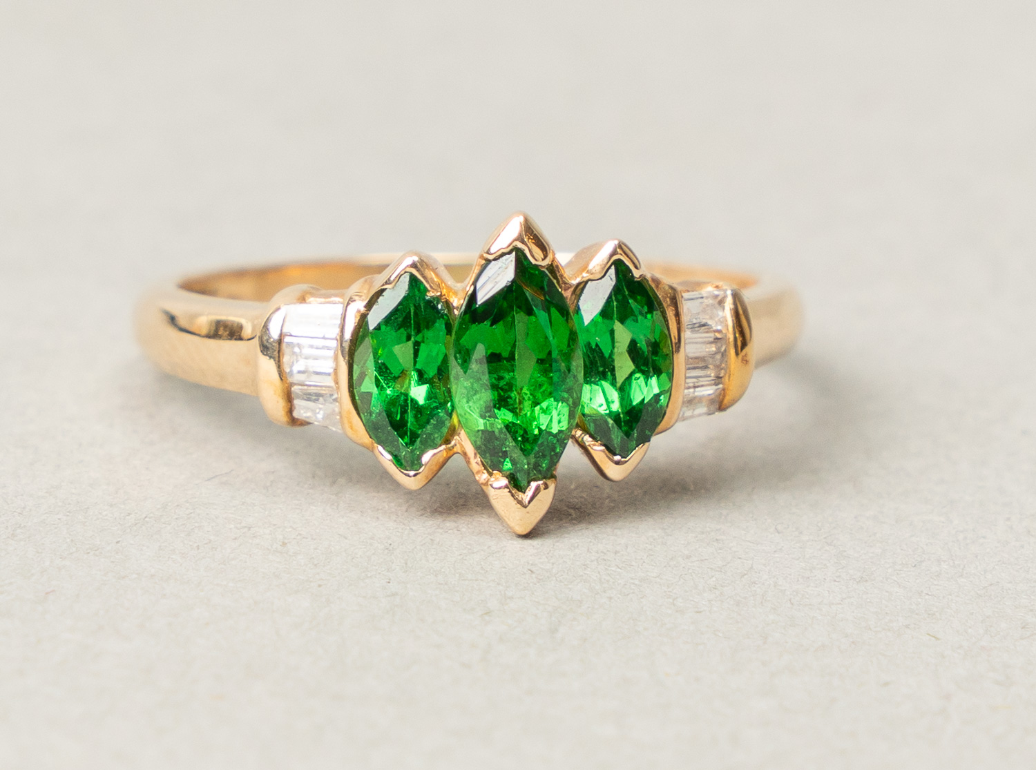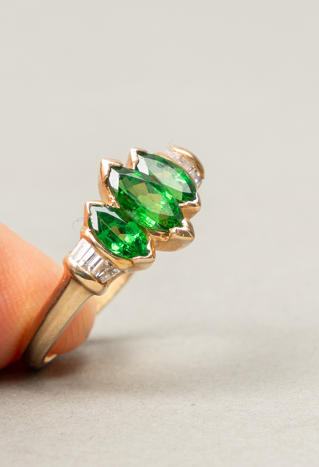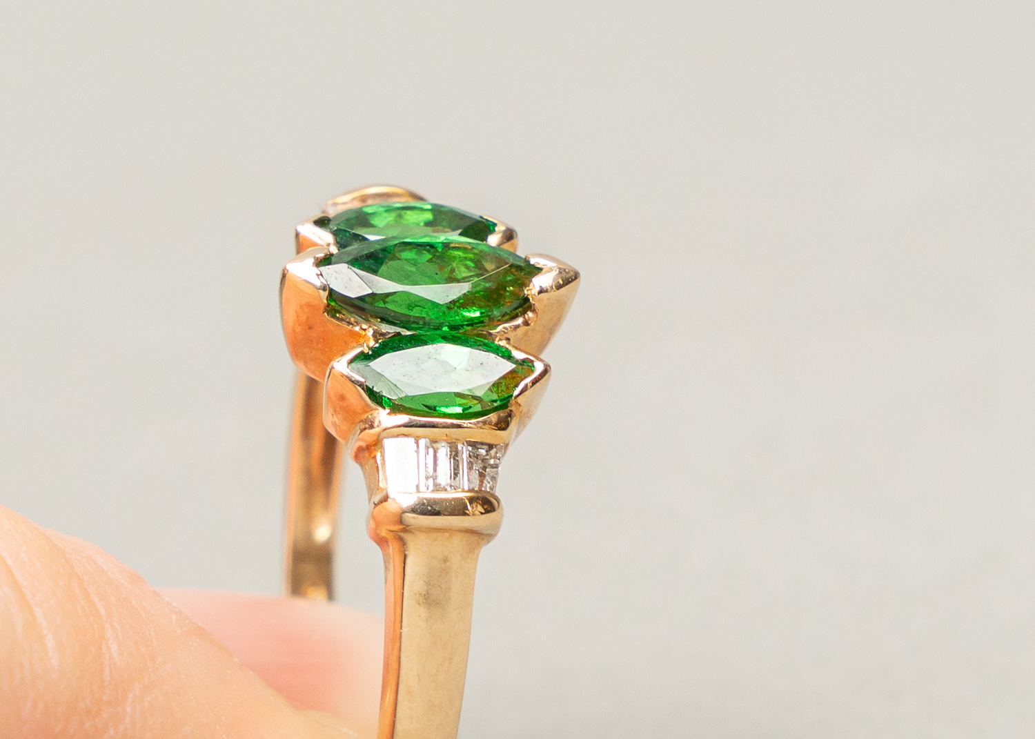Gold Ring, with emeralds and diamonds. Hallmarked. 2,42 gramm. Finger size 180 mm.