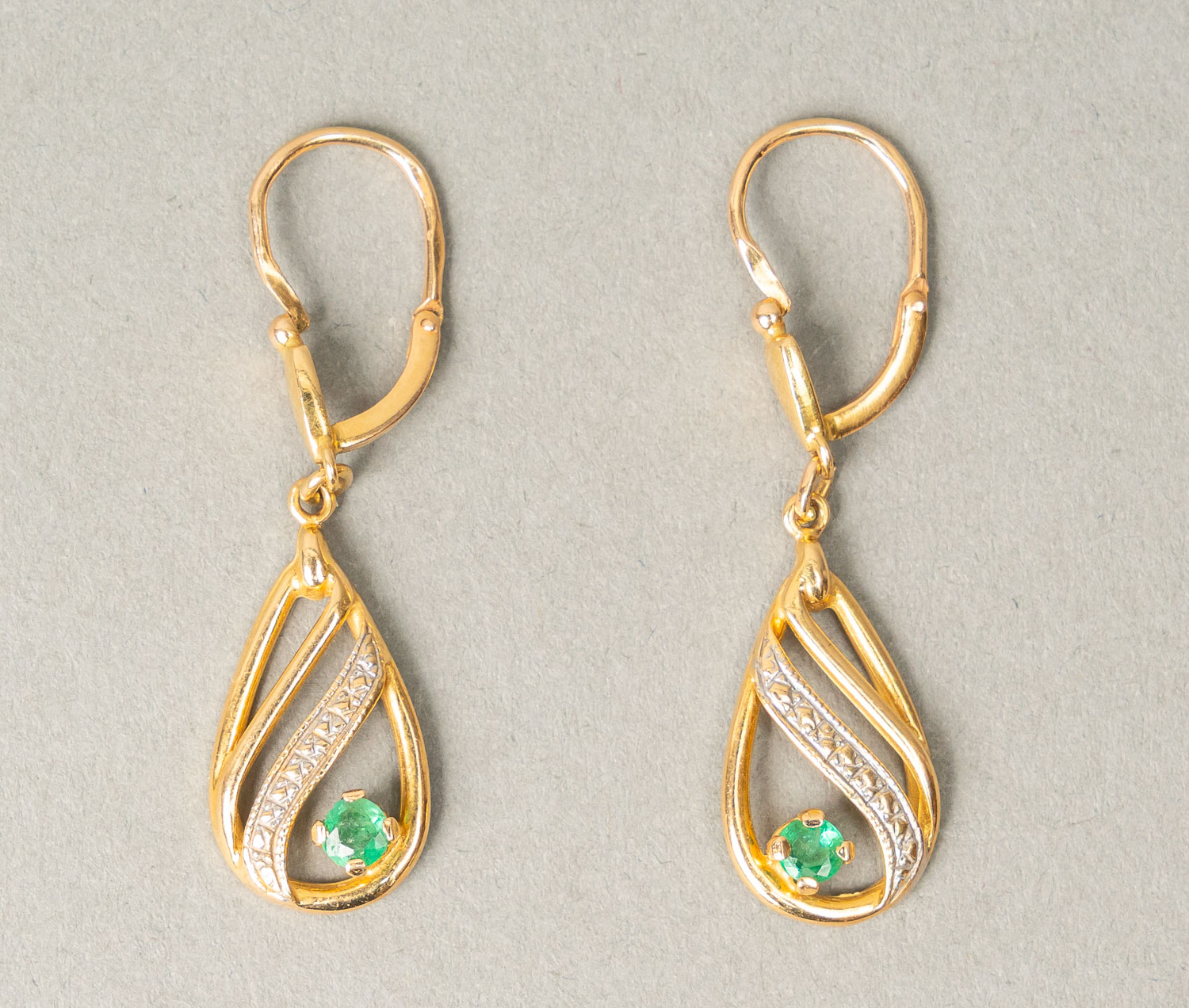 DEUTSCH AUCTIONEERS Lot222 in DetailGold Earrings, with emeralds. 3,41 gramm.