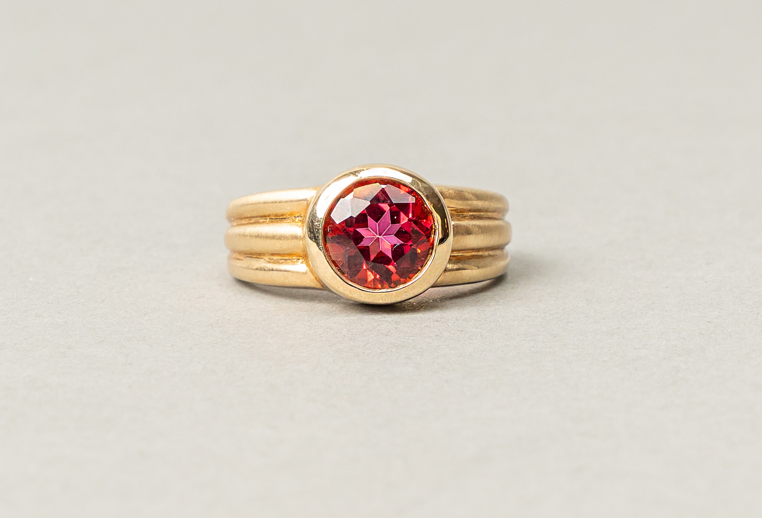 DEUTSCH AUCTIONEERS Lot225 in DetailGold Ring, with red rubin. Hallmarked. 5 gramm. Finger size 170 mm.