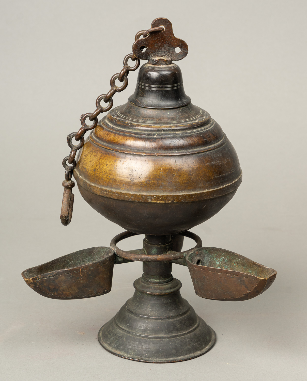 DEUTSCH AUCTIONEERS Lot228 in DetailOriental Lamp, bronze cast with original patina. Chain. 19Th Century. 30 ch high.