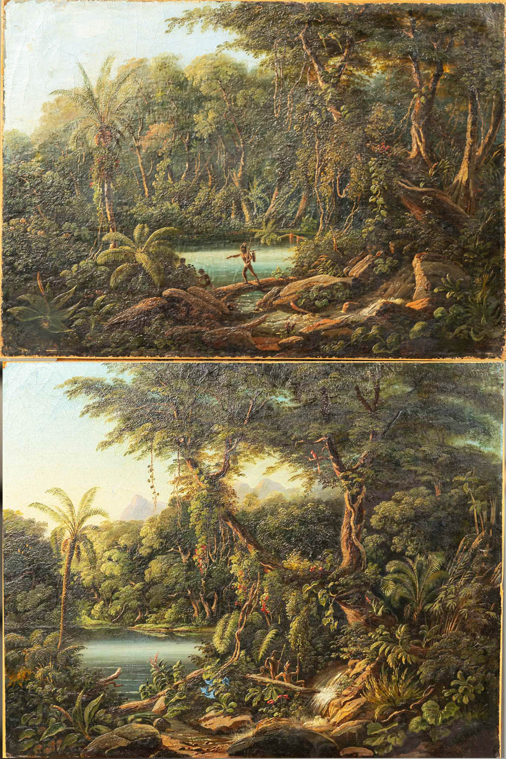 DEUTSCH AUCTIONEERS Lot239 in DetailMoritz Rugendas ( 1802-1858 )-atrributed . Pair of brazilian amazonas landscapes , oil on canvas, laid down on board, 65x80cm and 56x79cm