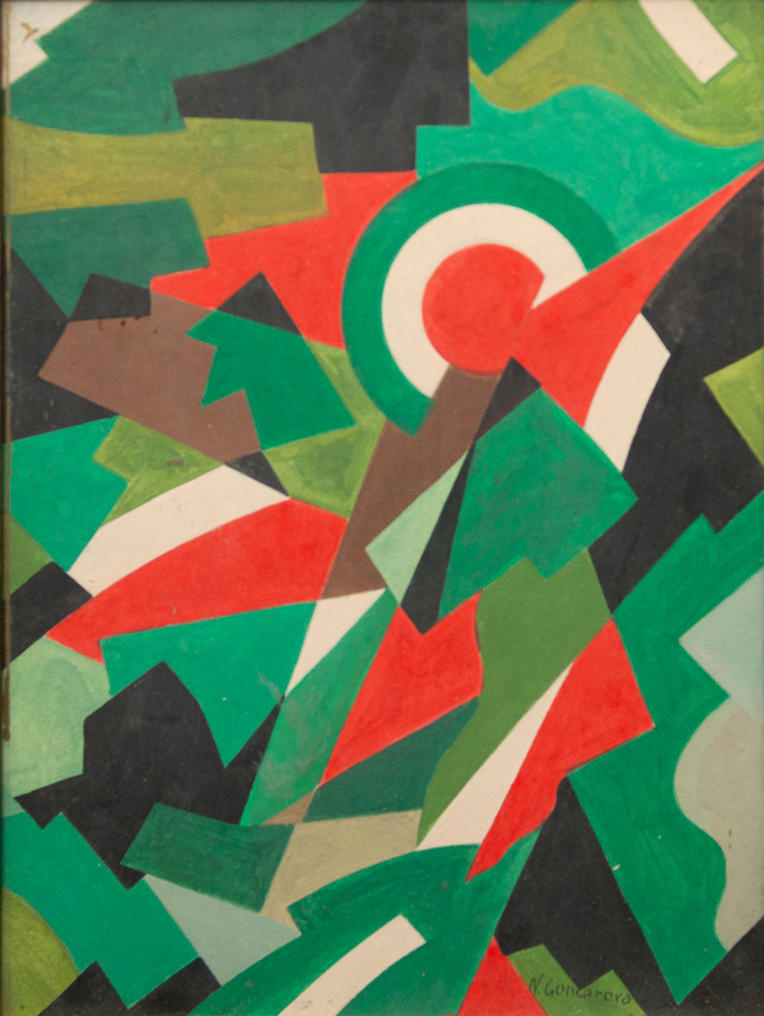Natalja Gontcharova (1881-1962)-attributed, suprematistic design. Watercolour on paper. Described bottom right. Framed. 40 x 30 cm.