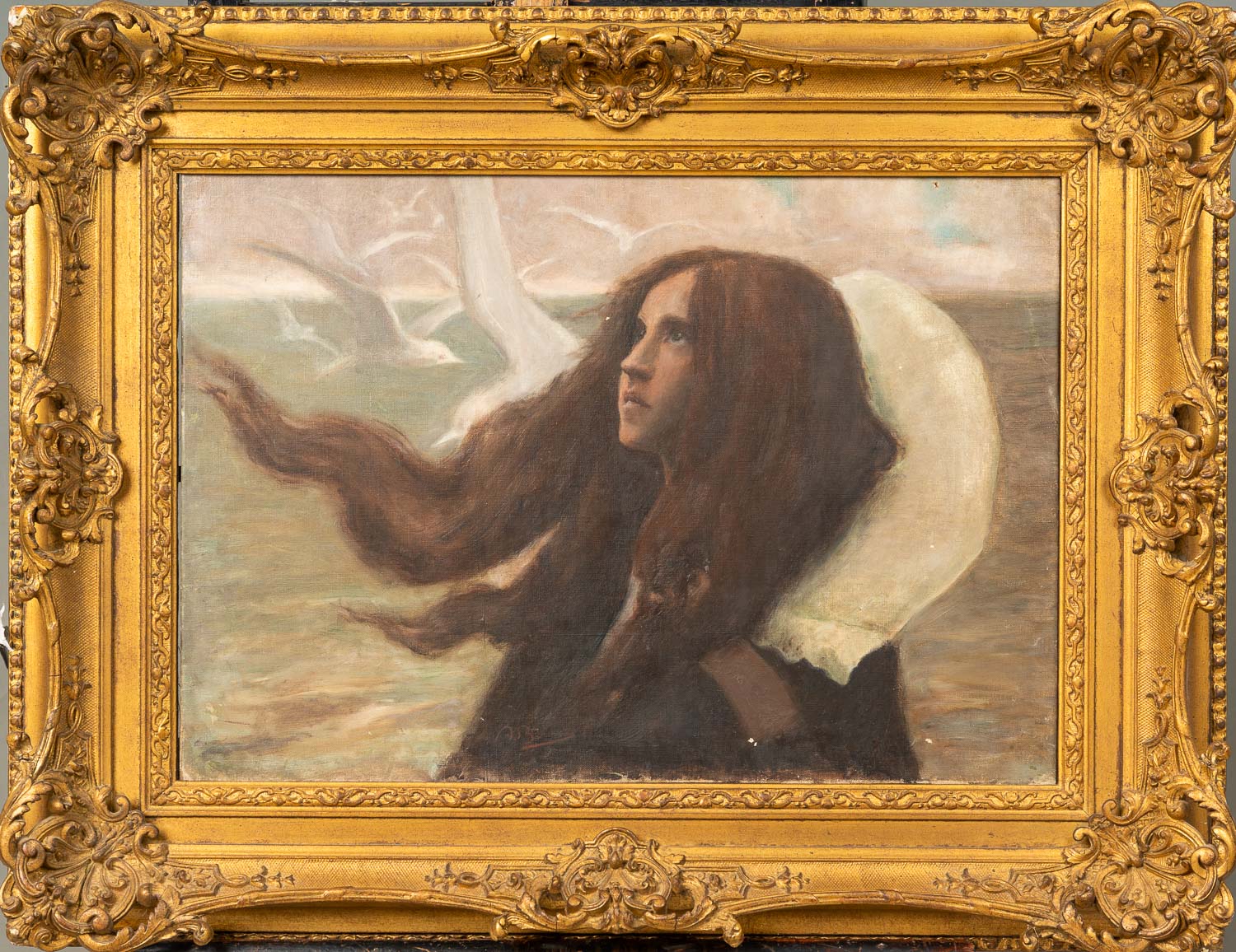 French Artist 19. century ., girl with pigeons. Oil on canvas. Framed. 50 x 70 cm.