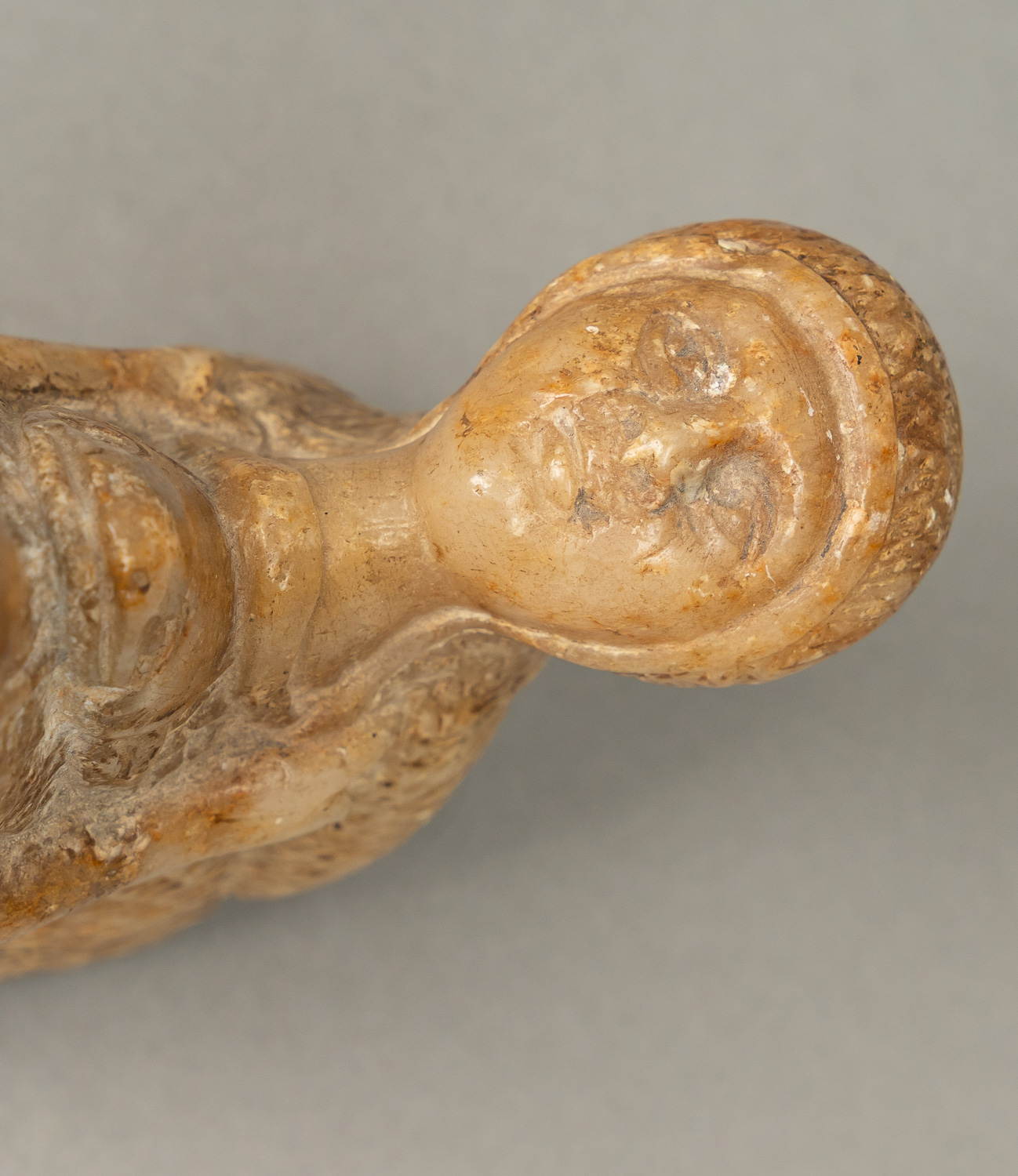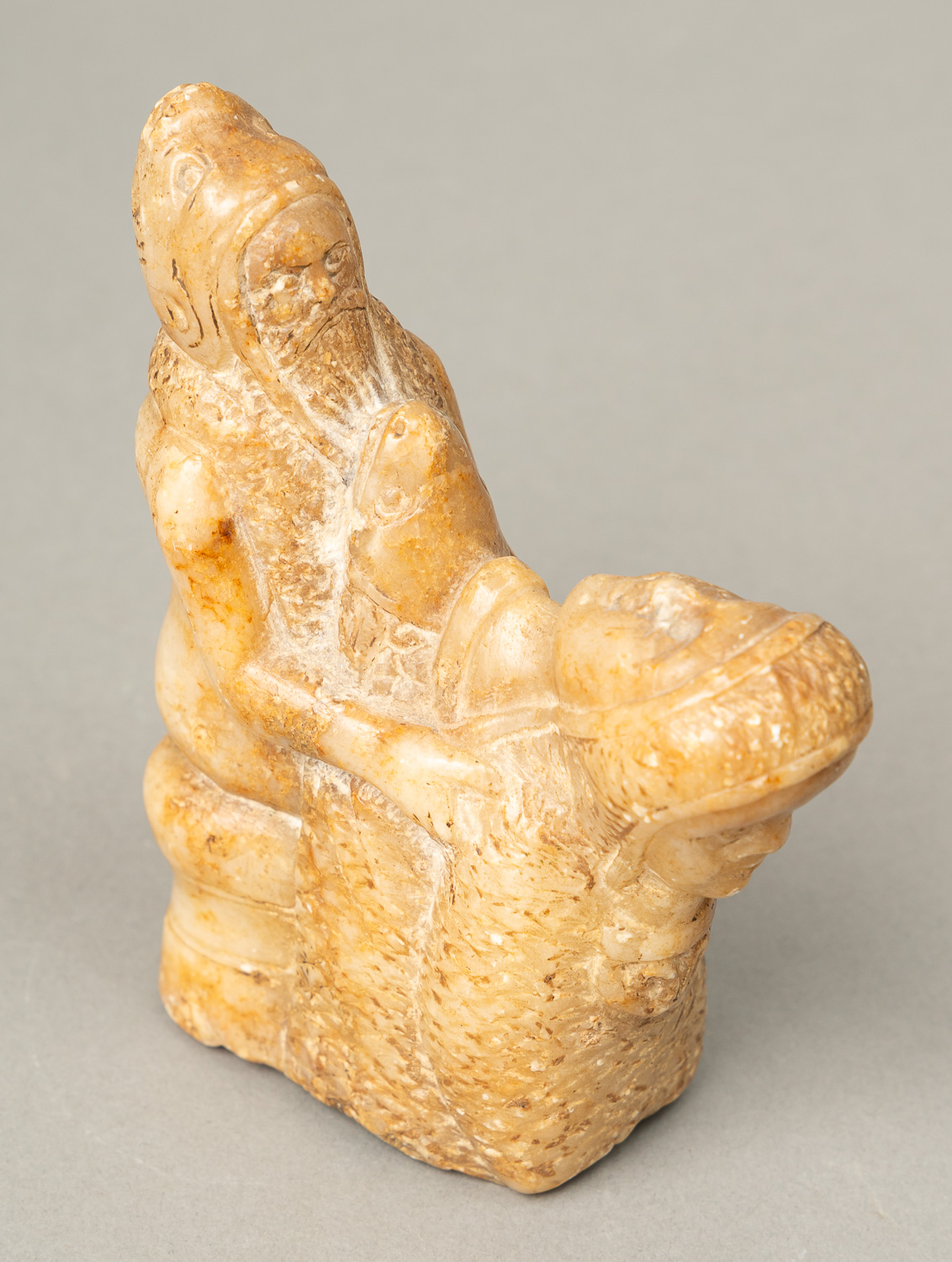 Erotic Symbolistic Sculpture, alabaster with grey veins. 19Th Century. 13 x 10 cm.