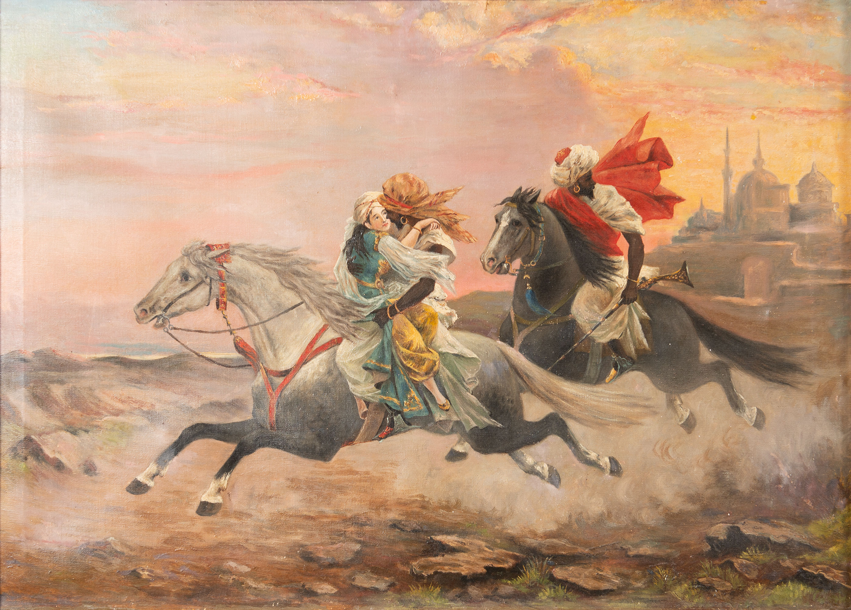Orientalist 19. century, Oriental scene. Oil on canvas. Framed. 60 x 85 cm.